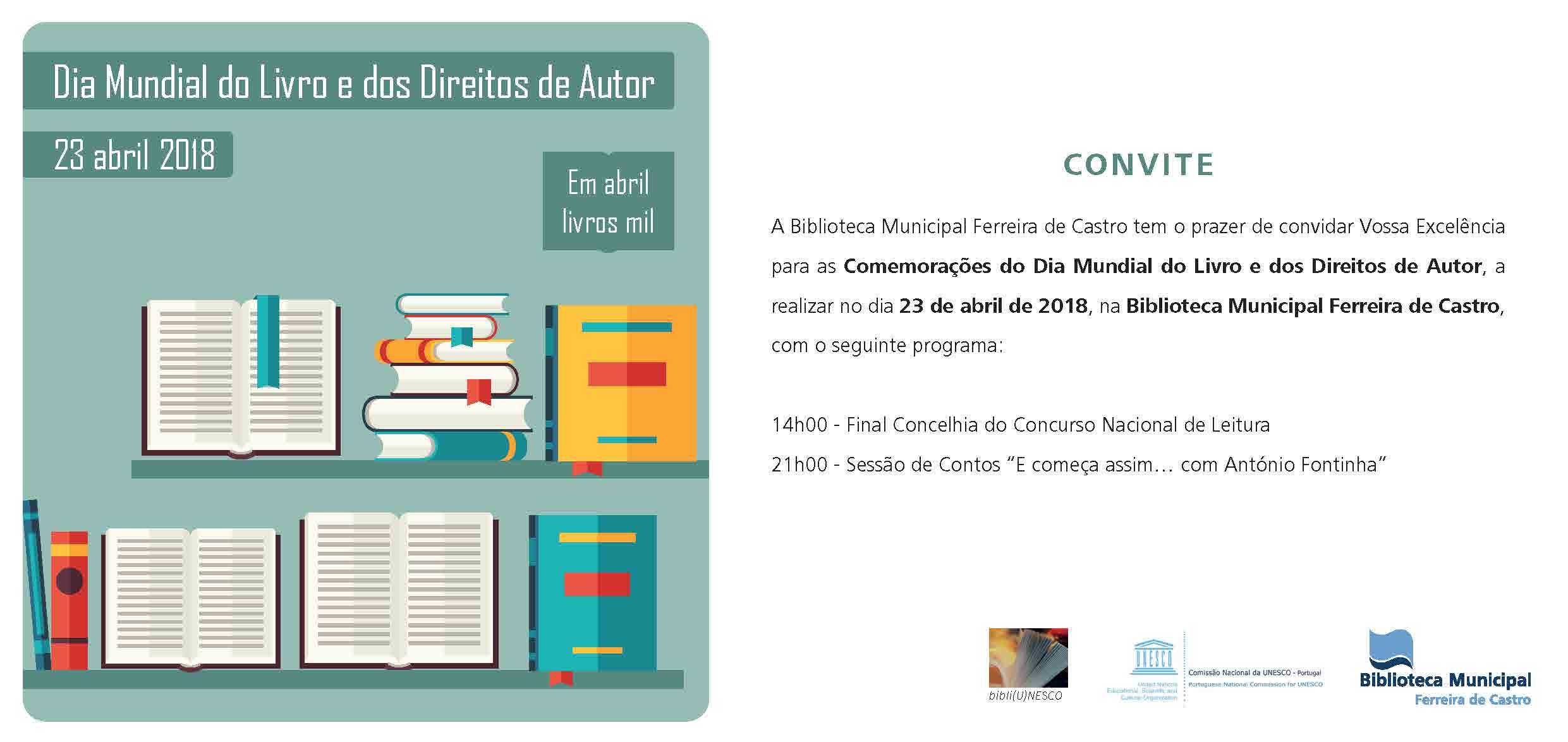 A fase concelhia do Concurso Nacional de Leitura terá lugar no dia 23 de abril, inserida no programa do Dia Mundial do Livro e dos Direitos de Autor.